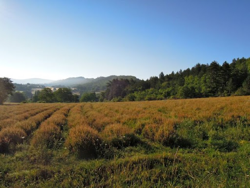 We did our tasting, contributed to the local economy, put the boxes in the car and headed back towards Céreste. A walk was in order, seeing as the rain had stopped, so we did a short (one hour) loop at the top of the Grand Luberon. It was through forest all the way, so there were no spectacular views, but it was quite steep in places. It seems that, for once in my life, I’m fitter than the Long Suffering Husband! You can’t tell from the picture, but he was actually gasping in this photo on the right! Speaking of Long Suffering, it seems I am destined to be the Long Suffering Wife on this trip. The LSH has been keen to photograph lavender fields for a few years now, and finally we are in Provence at the right time. While he clicks away with his super-duper camera, I could sit in the car like the sainted Long Suffering Wife that I am, but instead, I’m practising with my new Nikon Coolpix P300. ![]() |