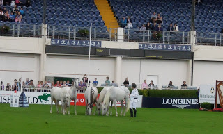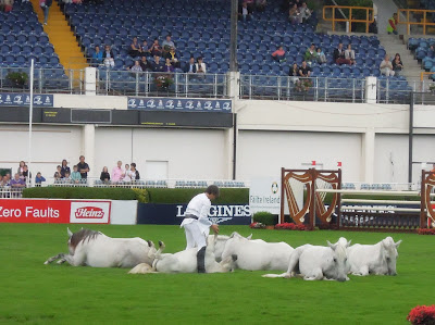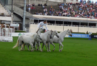 Jean François Pignon and his troop of Camargue mares were one of the entertainments for the duration of the show. They appeared twice a day, sometimes in the main arena and sometimes in Simmonscourt, which is an adjoining section of the showgrounds – it’s across a busy street, which is completely closed off to traffic during Horse Show Week.