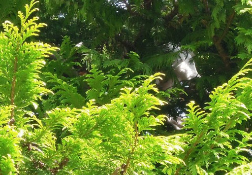 I peered into the tree top and called again. Branches rustled, the top of the tree waved backwards and forwards, and a little face peered out at me for a moment. From about as high up as she could possibly be, short of perching on the tree-top like a blackbird.