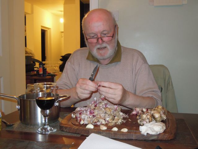 There’s enough garlic for at least one household for a full year. I could have made a big fat garlic plait out of it and brought it to Provence with us, but that seemed so wrong – just like bringing coals to Newcastle! So I researched a couple of recipes for preserving garlic and set Denis to work :