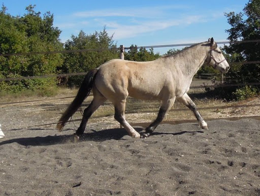 Nope. Too unsettled for that, too. He volunteered to trot around a bit, so I sent him off for a few laps in either direction. He was enjoying the surface, and looked pretty good for a horse that had just travelled over 2000km.