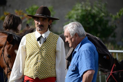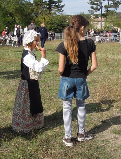 There were more and more colourful Provençal costumes in evidence as we left and still more on the approach road to the Foire.