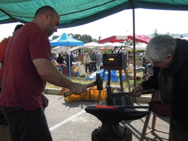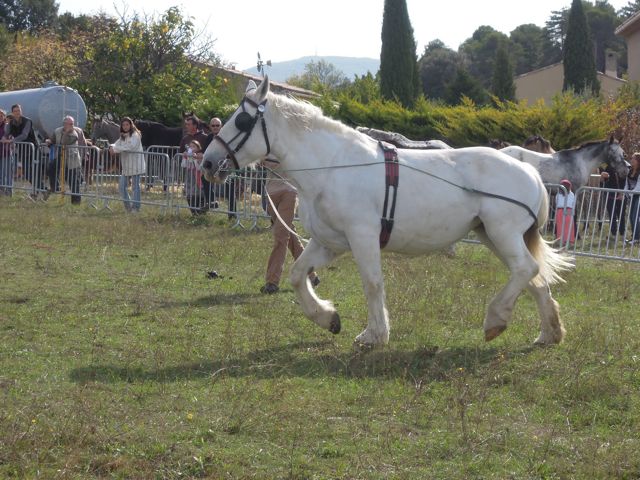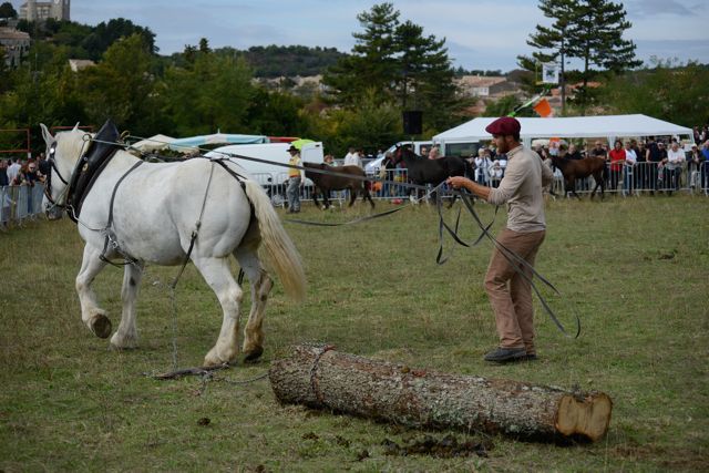 Since we got here, we’ve been seeing signs proclaiming “Foire Agricole à Reillanne, 14 Oct” (Agricultural Fair in Reillanne). Something like a harvest festival, we surmised. Keen to experience local culture in all its forms, we resolved to drop into the Foire for a few hours on Sunday morning, before setting off to collect the horses.