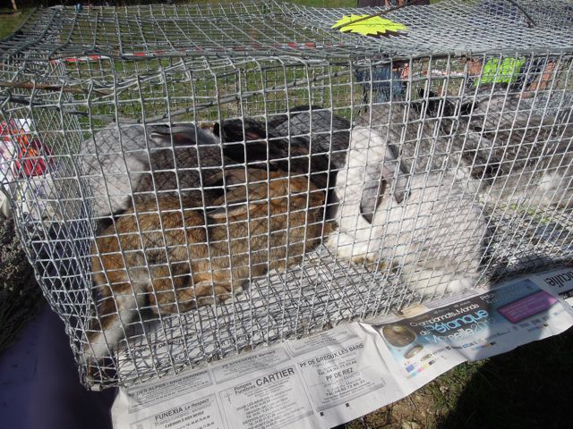 Sad to say, I think the cage of rabbits belongs in the food section. While doing Le Big Trek, Anne and I passed a farm with cages and cages of rabbits at one side, just like these. Yum.