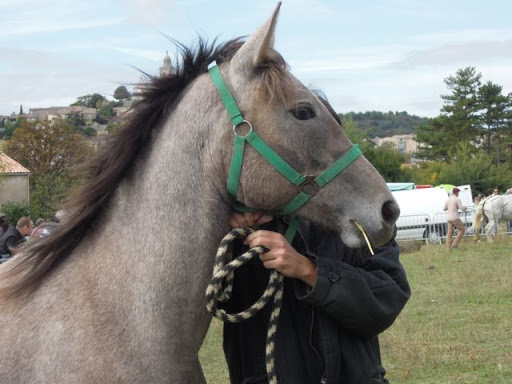 After the Forestier, a few young horses were introduced. Their owners were hoping to find a buyer in Reillanne – an unlikely outcome, to be honest. This colourful chap was trying to sell a couple of mules :