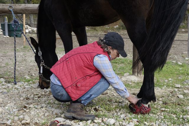 Flurry went barefoot, but Aero wore his Renegade boots. There’s good news and bad news there – the good news is that his left front has spread a bit more, so it’s almost the same size as the right one, but the bad news is that I now have two size 2 boots too many and one size 2W boot too few. It’s time for some more online shopping, unfortunately.