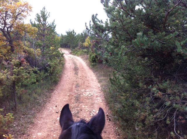 The hack was completely uneventful – a forty-five minute stroll through lavender fields and woods, with about five minutes on the road at the end. Flurry sweated up a lot – it was 20C, hotter than we experienced all summer in Cork, I think! I will have to get the clippers out and give him a very light clip, he’ll have plenty of time to grow more hair between now and January/February when the cold weather usually hits.