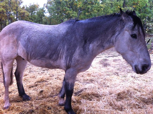 I was met by a thoroughly soaked Flurry, who was standing outside the field shelter with a morose expression which would have put Eeyore to shame.