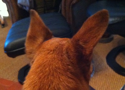 I’ve been concerned about how Cinnamon would cope with a serious thunderstorm here since before we moved. Due to her heart murmur, we can’t give her sedatives, but during the first (brief) storm here ten days ago, she worked herself up into quite a state, panting, shaking and trying to dig a safe nest in the floor, with her little heart pounding all the time. That time, she ended up underneath our bed, and once the storm moved on she calmed down pretty quickly.