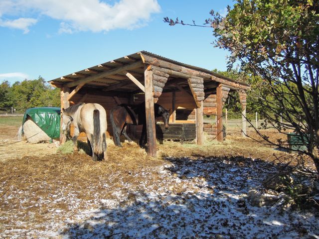 | The Boys in their shelter with Winter’s first snow on the ground |