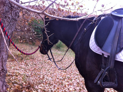 When the time came to tack up again for the return journey, I tied him up to a tree so I would have both hands free. He stood absolutely fine as I went to and fro picking up his gear – next time I will tie him up but stay nearby while I eat.