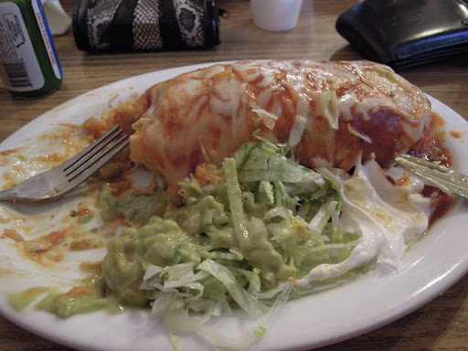The LSH ordered the Super Burrito 49er with Beef. This burrito came with The Works – tomato sauce poured over it, melted cheese on top with salsa, lettuce, guacamole and sour cream all crammed onto the plate beside it. He managed to eat it all. He’s a growing boy, after all.