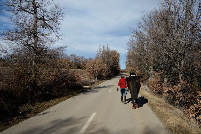 We did the serious French trekker thing of leading the horses at the beginning and at the end of the ride. It does make sense, it surely helps them warm up and cool down properly, but it also gave us a chance to ease out our tired and cramping legs after an hour’s riding.