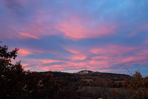 We drove home in the middle of a superb sunset, so much so that the LSH parked at the side of the road, leaped out of the car and snapped this lovely shot of the nearby village of Lincel.