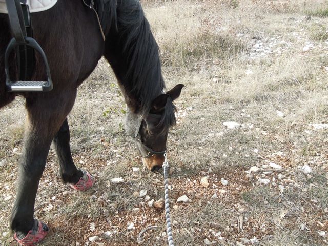 We carried on to the next viewing point at Reclapous, where once again, both horses (and their riders) stopped and drank in the view. There was a heavily mustachioed Frenchman there, standing beside a QatQat (my spelling, not correct, but it means a 4X4 vehicle!) twiddling with the dials on a piece of electrical equipment which had a big aerial. He looked up and greeted us cheerfully.