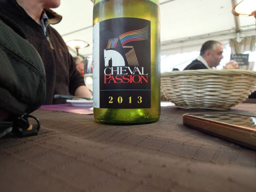 We watched the last horse go and then the crew came in to clear the arena so we settled to eat. Even the wine was specially labelled for the occasion :