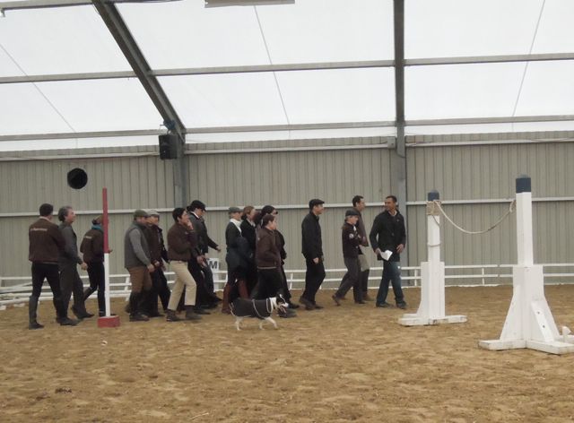 The riders got to walk the course with the course designer and their trainers – it looked just like a show-jumping course-walk back home, complete with Jack Russell, except the riding attire was a bit different!