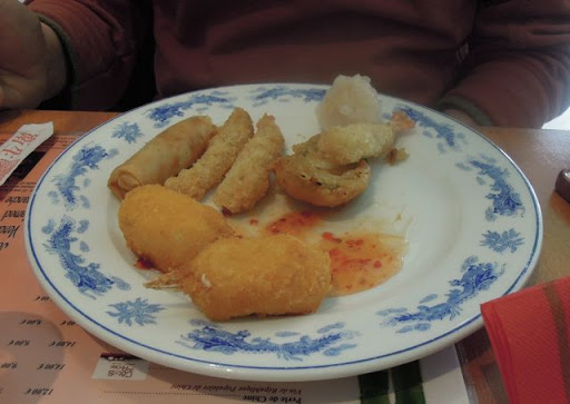It’s a gigantic hall of a restaurant, with the buffets laid out in the middle. There was one with bits and pieces you could ask the Wok chef to cook, one with starters, one with mains and one with desserts. We stuck the the stuff that was already cooked, to keep it simple, and we hit the starter buffet – nems (spring rolls), chicken things, fried vegetable things, prawn things and some other seafood things (that I stayed away from), with an array of salads and sauces to accompany them.