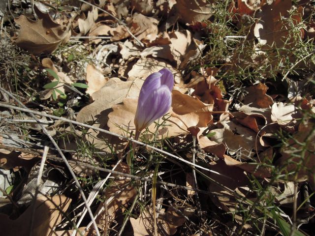 When I saw this little guy sticking its head out through the leaf mulch in the woods in early February, it was a sure sign that Spring is on its way – although it proceeded to snow heavily again the next day!