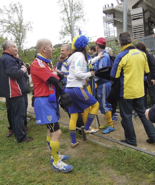 Finally, the rain stopped just as we made our way to the tram that would take us to the stadium, and when we arrived at the Stade Mosson and met The Yellow Army, the party atmosphere took over and banished all thoughts about the weather.