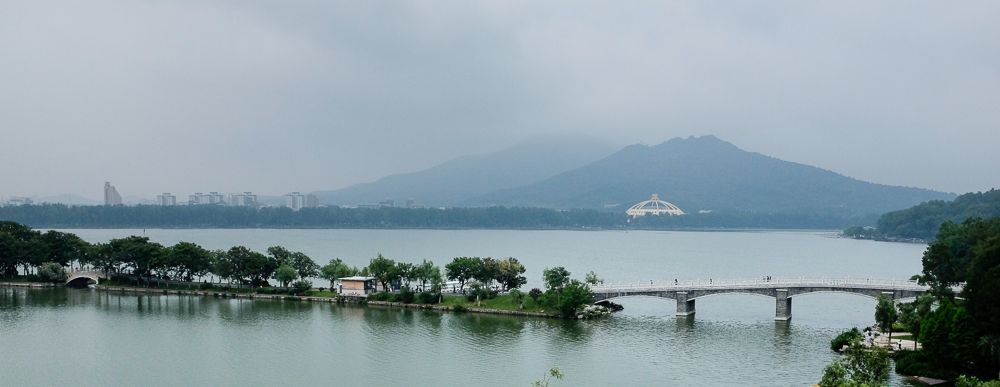 It was cloudy, grey but warm even that early in the AM. First up was the Nanjing City Wall, built during the Ming dynasty, which is to say it is 600 years old, but you can still walk all the way around it if you so choose. We entered the wall by Xwanwu lake, a popular park and lake in the centre of the city. We walked part of the wall and gazed down on the Lake and the locals performing T’ai Chi. “See that mountain over there?” asked ZXG, “thats where we are going next”. “By Taxi” I asked, “Nope, we are walking up to the top, and then to the top of the second one, but first we should walk by Xwanwu Lake”