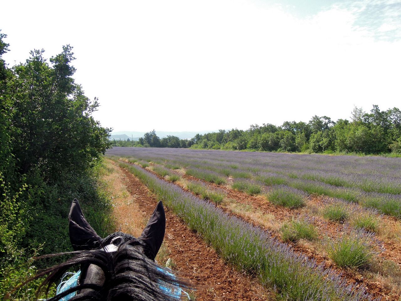 Flies, like the heat, are less bad first thing in the morning. I’m willing to get up at stupid o’ clock to ride, really I am. But therein lies another problem. We have one vehicle shared among four people, seeing as we decided not to drive The Heap (in the interest of health, safety and a desire to see our sixties). Ash had to be dropped to work for 8AM on Monday and Thursday. The LSH had a photo shoot in Céreste on Tuesday, starting at 9.30AM. We were all sick on Wednesday and dared not stray too far from the loo. The dogs were were neglected all week, so they were given a good long walk early on Friday morning. I had promised to bring pavlova to a lunch party on Saturday, so I had to get up at 7am to make it.