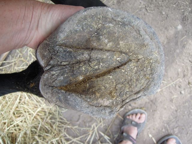 His frogs have bulked up and his heels are finally beginning to open out. The heel bulbs even look beefier, although it’s hard to be sure with the photo being taken from a different angle. Is this because I took The Dancing Donkey’s advice and bevelled his heels?