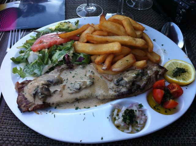 Veal escalope in mushroom cream sauce with chips. Yes I felt guilty about the veal, but it was a seafood restaurant and there wasn’t much else I could eat on the menu!