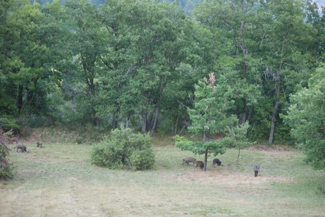 A couple of weeks ago, we were driving home from the Gorge du Verdon late in the evening and Ash suddenly yelled “Wild Boar!” We stopped and looked – there were about ten sangliers in a field beside the road.