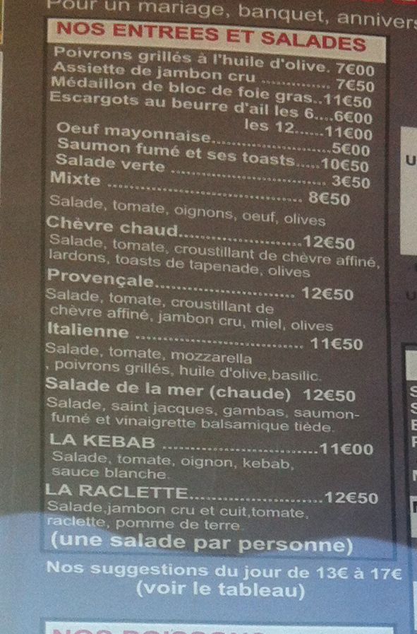with the seafood salad coming in at a whopping €3.00 extra if you want to eat it in English.