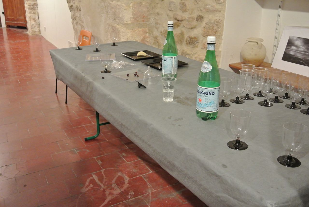 The vernissage was a great success. There were about forty people there, sipping wine or sparkling water, eating olives, saucisson or crisps… He even sold a couple of pictures (woohoo!)