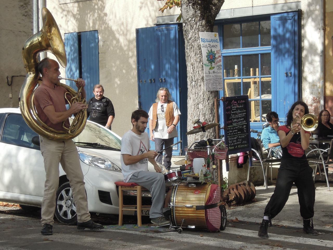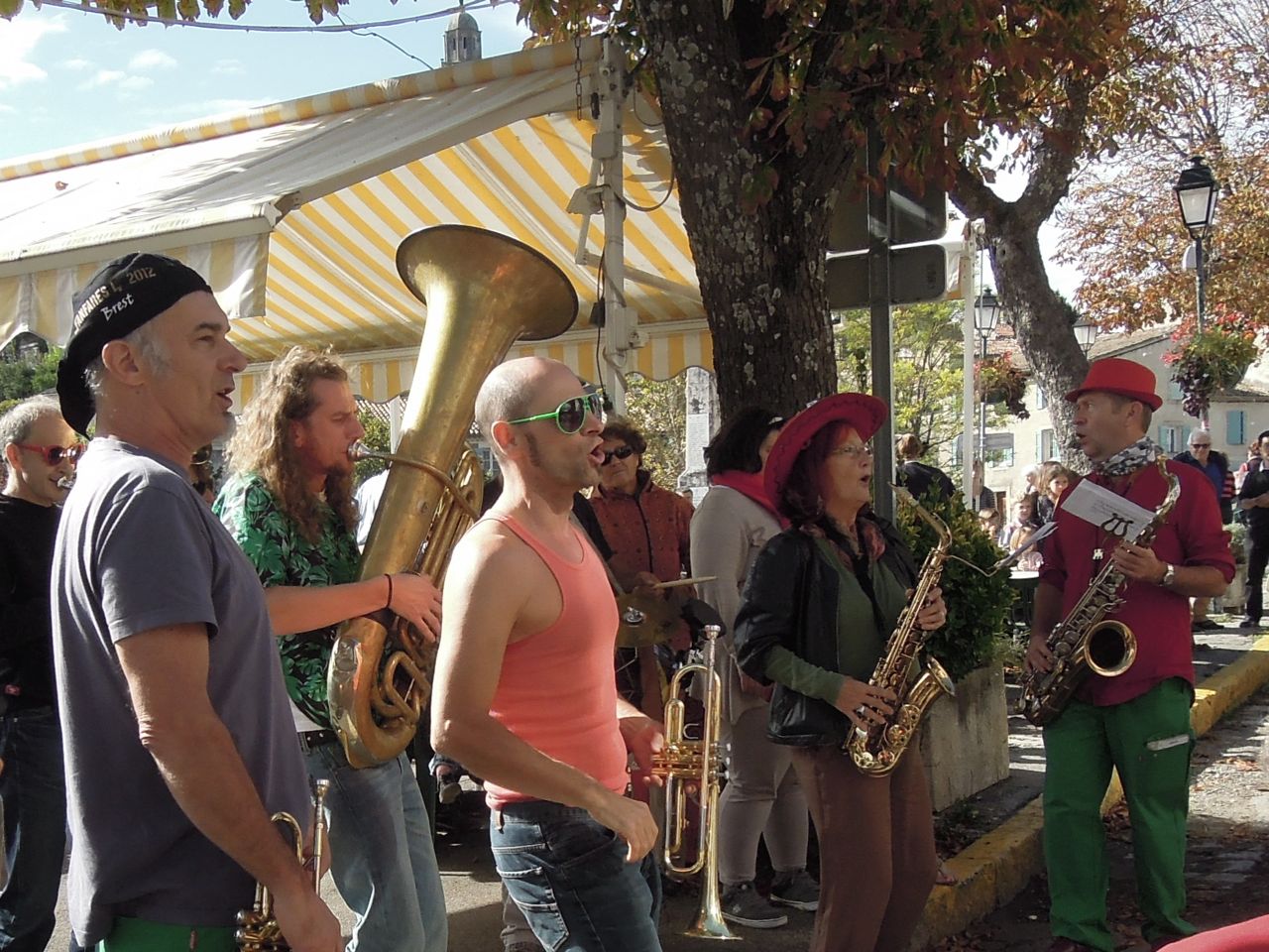 The band is made up of a large group from the Drôme region, augmented on this day with a few extras from Apt. Their love of music is plain to see, every one of them oozes music and dance from every pore of their being. They clearly love getting together and their passion is infectious. They played for nearly two hours, with musicians swapping in and out as they needed to draw breath – literally!