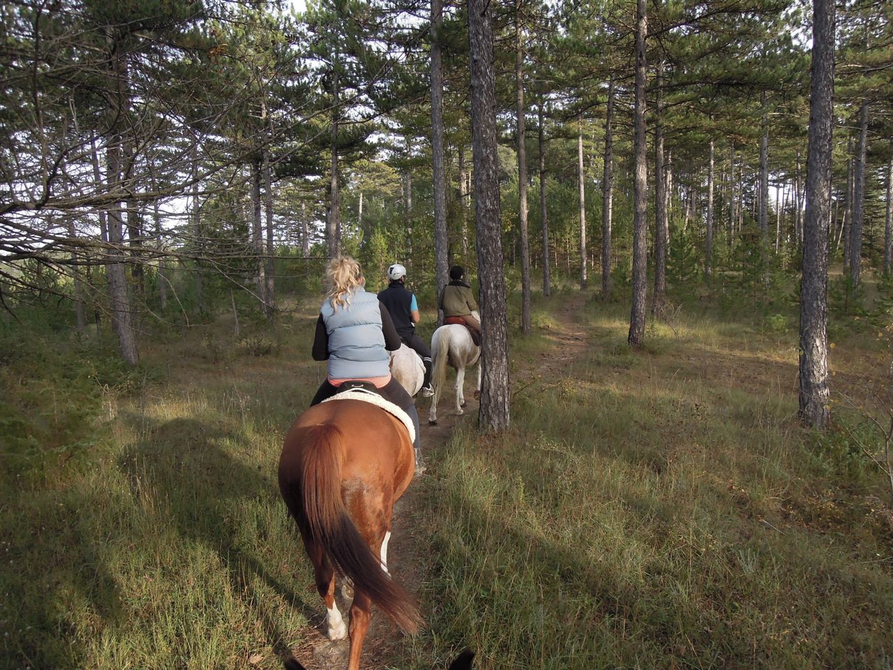 Once everyone was ready, we headed into the Forêt de Pelissier for our ride. The Endurances had promised that all the trails were great, with a sandy surface, but their horses aren’t barefoot! Sure, the trails were better than in the woods near the farm, but they were still pretty stony.