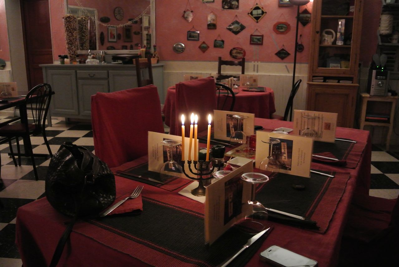 Maryvonne had the perfect candles for it and after some discussion about how many candles should be lit (they agreed that it should be one but that four looked nicer) it was proudly set at the head of the table and Stephen recited a prayer. Well, as much of it as he could remember, anyway.