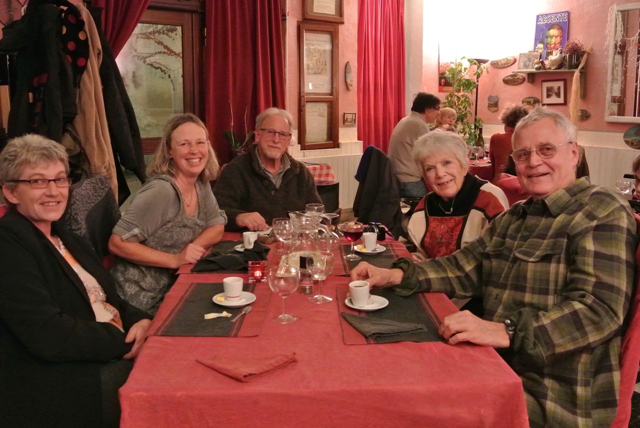 The other diners arrived in dribs and drabs; we nibbled on our olives, sipped our Kir Maryvonne (a house speciality) and chatted until Maryvonne stood up to do a Thanksgiving address.