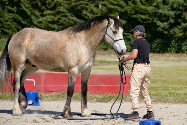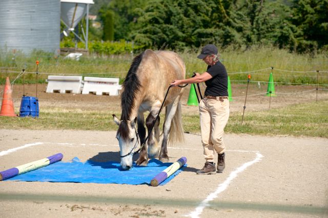For the rest of the competition, my aim is stick to the easy, 10-point option for each test. (You make a ‘contract’ for each test, 10, 15 or 20 points. For 10 points, you do it the easiest way possible with a head-collar and lead rope. For 15 points, it may be a little more complicated and you do it with a head-collar and lead rope, but the rope is attached via a light elastic. For 20 points, it may be more difficult again, the horse must perform it with no head-collar and you are not allowed to touch your horse).