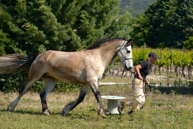 First thing we see on arrival is two donkeys, and I’m thanking my lucky stars that I didn’t bring Aero! After eighteen months, Aero still can’t walk past Grisou the donkey without a little panic attack. I don’t think I would have been able to capture his attention for long enough to ask him to do anything once he’d seen the donkeys at Joucas!