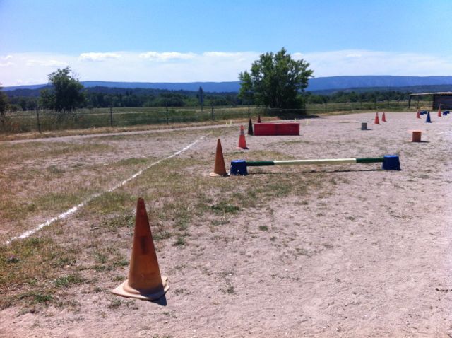 Because I’m judging, I can’t really take photos, but I manage to snap a sneaky one of MC and Quieto doing the slalom on my iPhone. They are really good at this, and he goes over the big red blocks on the second attempt :