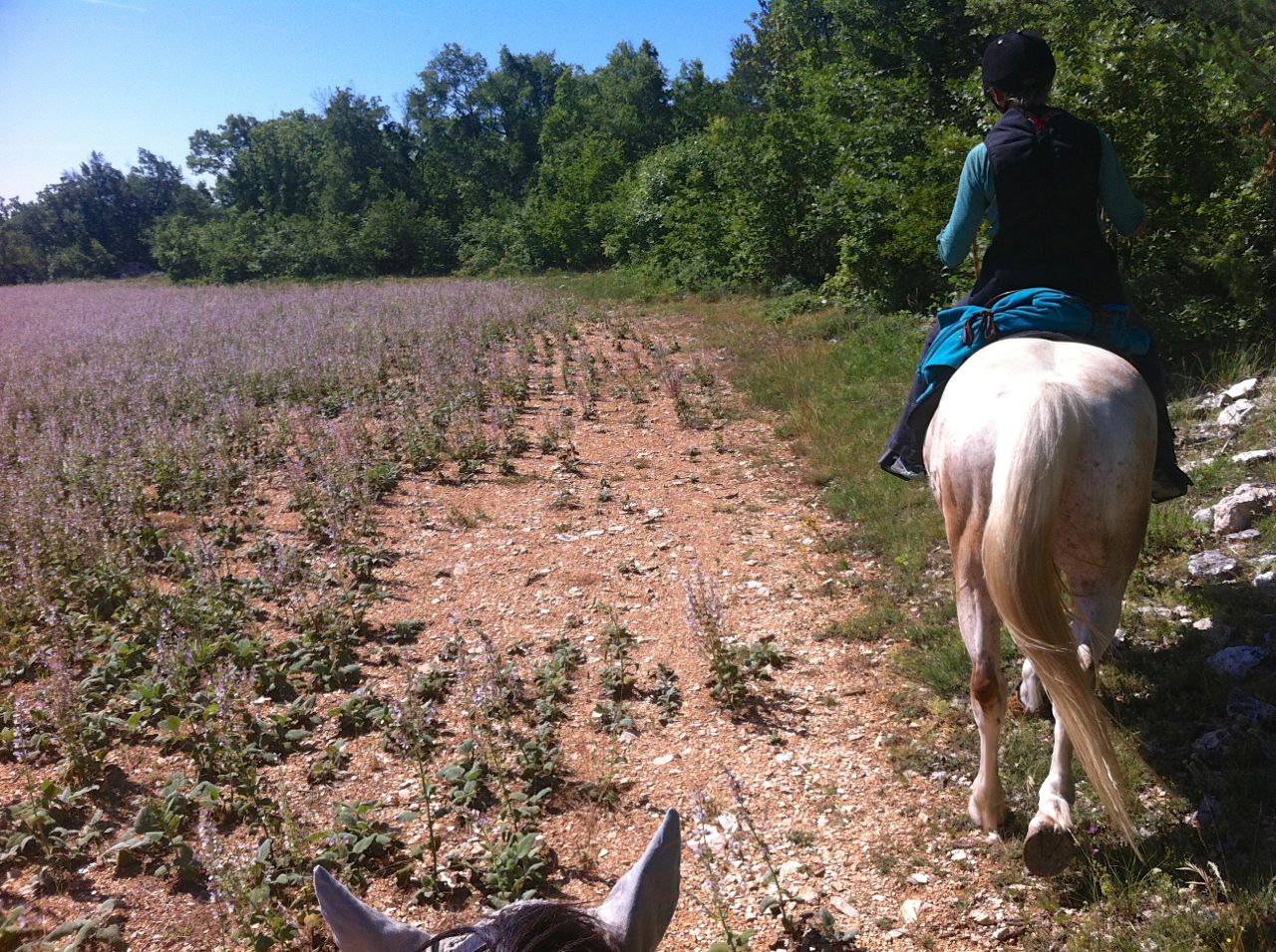 This particular trek goes through the fields where Georges is growing crops for essential oils, Clary Sage and Lavandin. Sam hadn’t gone this way before and she was blown away by it. Even for the locals, there’s something special about riding through the lavender fields.
