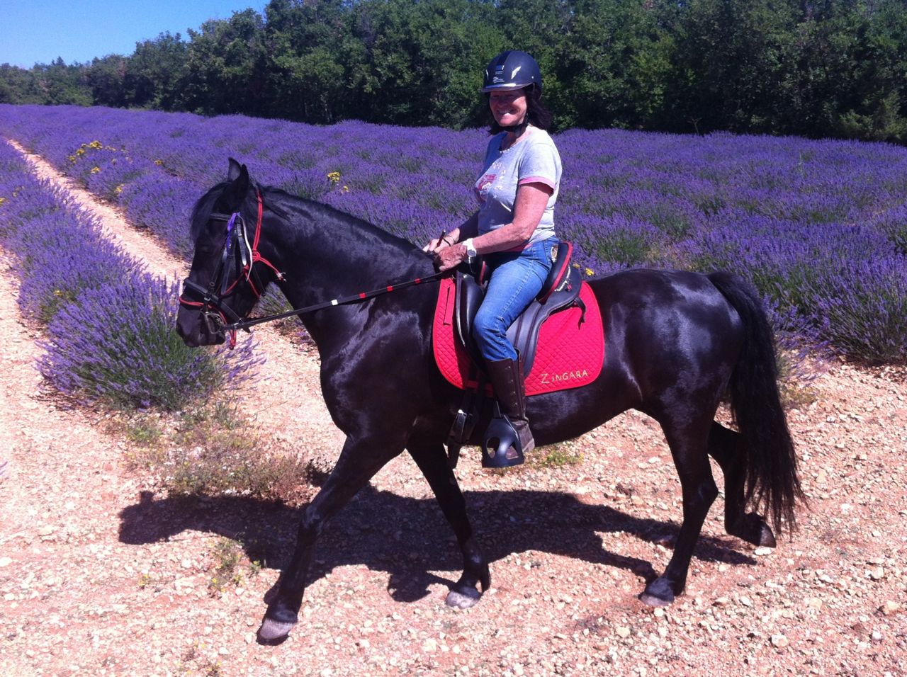Earlier this week, I trekked part of the way down to Reillanne with MC as she returned home with Quieto. We have two new companions, Sam and Zingara. Zingara (it means Gypsy) is a four year old who was recently broken by Alexandrine. Sam is keeping her at the farm for a while, as they get to know each other. Zingara is a Merens crossed with a Spanish breed (I’m not sure which one). She seems like a sharp little thing, but she’s going great for a newly broken four year old and didn’t put a foot wrong on our trek. After years and years of riding Western, Sam is loving all the new stuff she’s learning. She’s been doing a lot of Equifeel and she’s starting to learn some dressage – English riding! – so she’s ready to take on some competitions in the Autumn. Another member for Team Alexandrine!