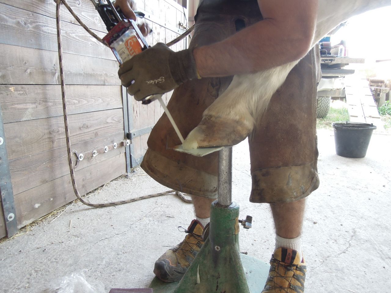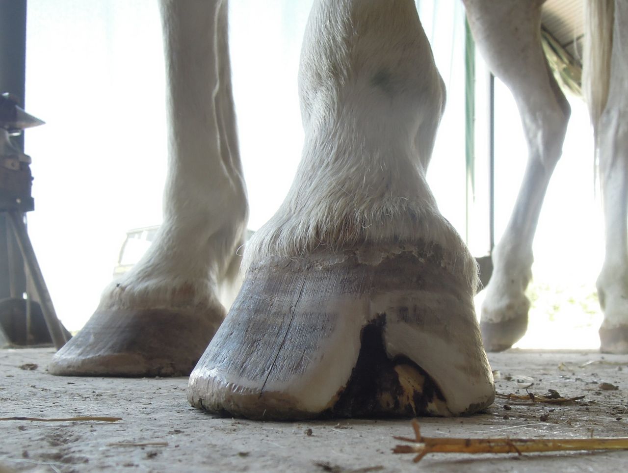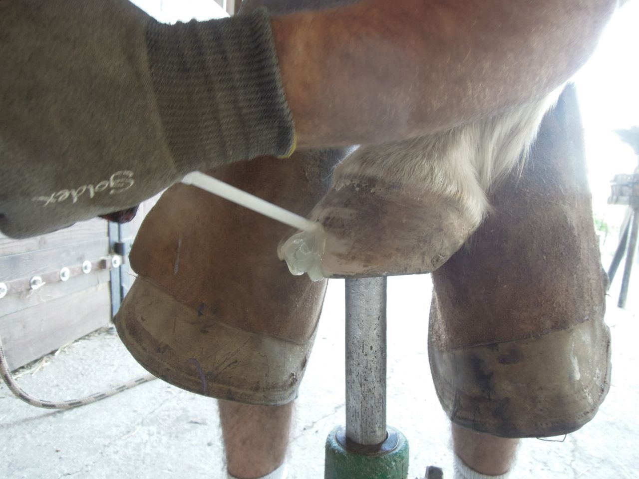 Mr Endurance said it was no problem and it hadn’t penetrated the sensitive structures of the hoof, but he would fill it with resin, which will hold it together and gradually grow out with the hoof.