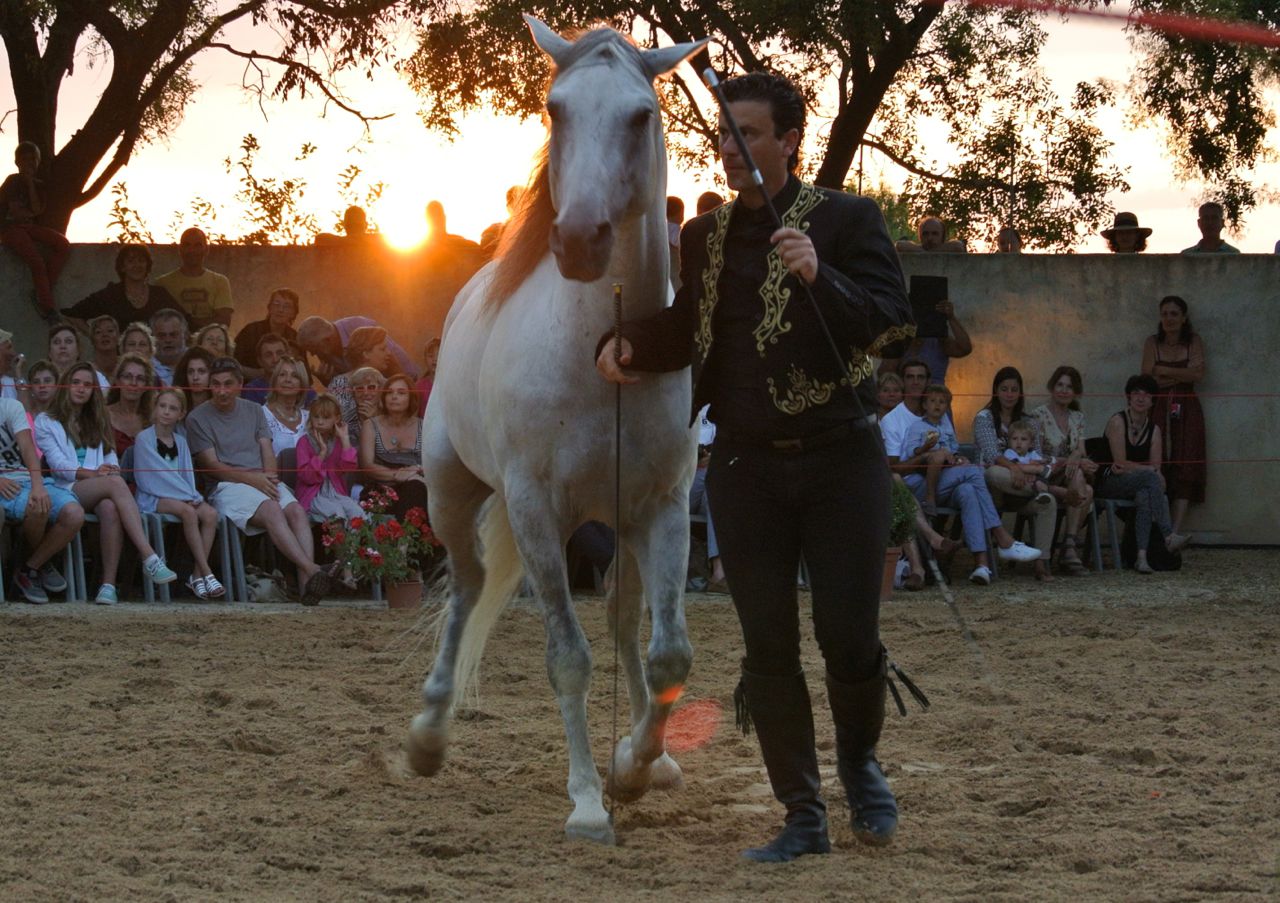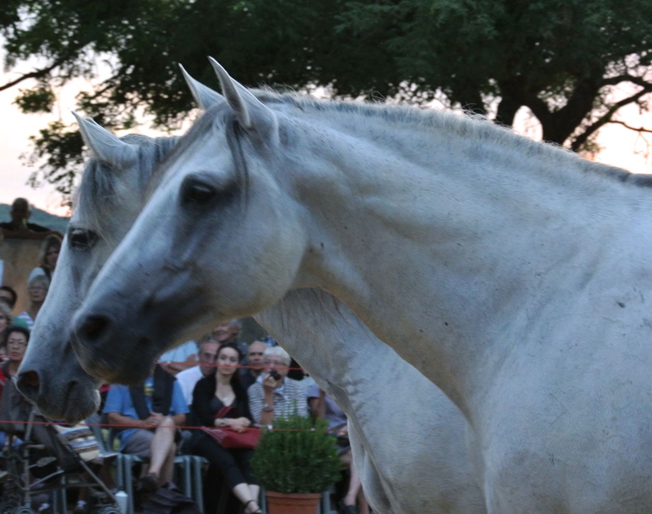The light was nearly gone at this stage, but I snapped a few photos of the next performance, once again a pas de deus, although with the lady riding side saddle and with some more advanced movements this time…
