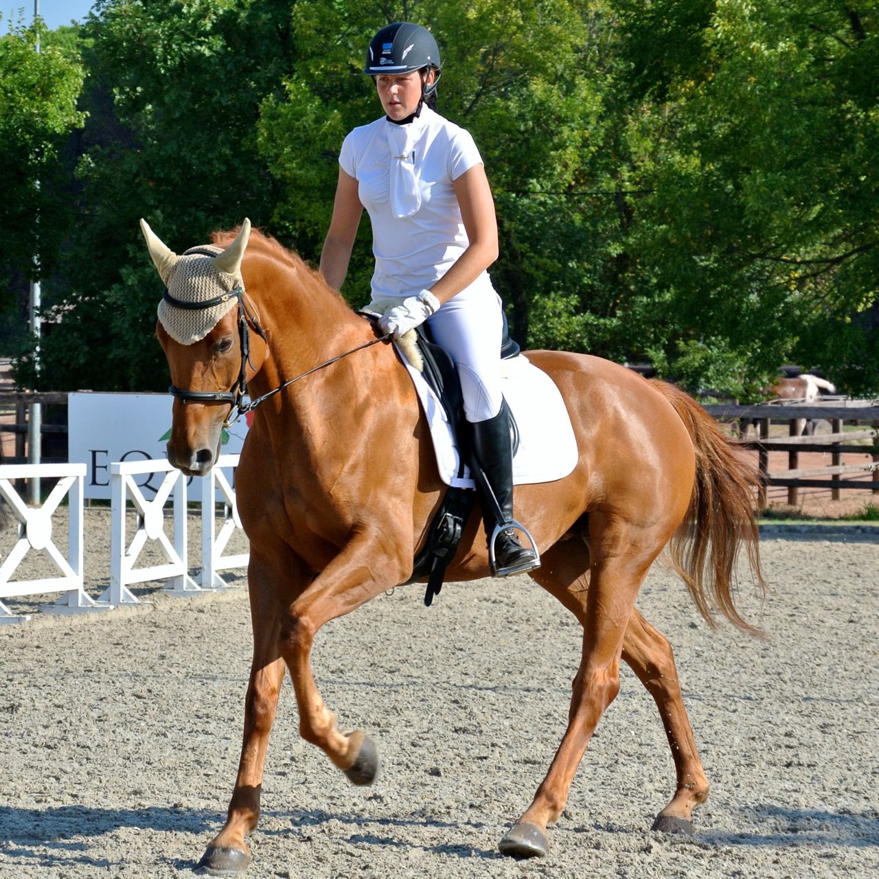 On the second day, things did not go so well for Alex and Valentine. Valentine is used to turnout 24 hours a day and, after being confined to a stable for almost a full day, she had stiffened up noticeably. She still scored 67.2% (I’d have been thrilled!) but that wasn’t enough for Premiere Prime. She was only 3% off the class winner, but still ended up in fifth place that day.