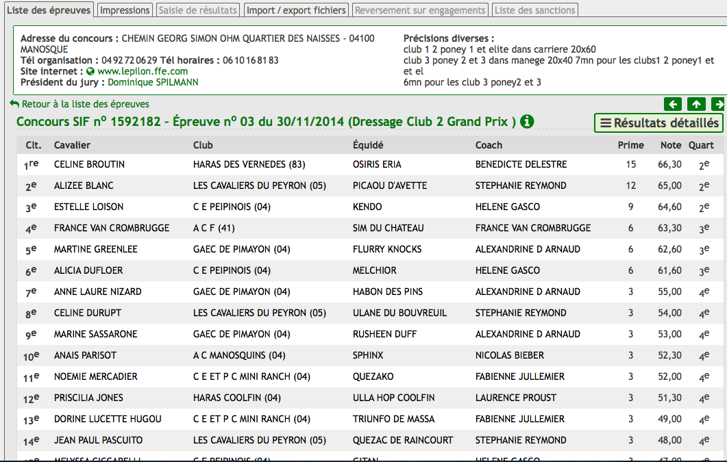 So in we went. The LSH was watching from the long side, Marine and her sidekick Mathilde were watching from the far end and Alexandrine was watching from the end nearest the warm up. All were ready to pick up the pieces, I suppose.