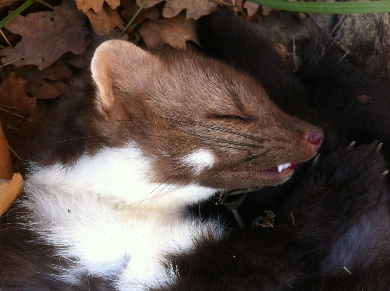A stone marten? I’m not certain, but I think it’s more likely to be a pine marten. The white blob on the chest of stone martens splits and runs down their front legs, whereas this guy just had a single, unbroken blob.