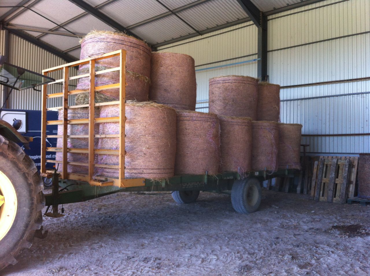 It’s a load of hay, from Incomprehensible Michel (even the French struggle to understand him). His hay is weird – it looks like straw, but the horses love it. Last year’s stuff was extremely un-dusty. If this year’s batch is the same, I will no longer have to soak Aero’s hay. Fingers crossed…