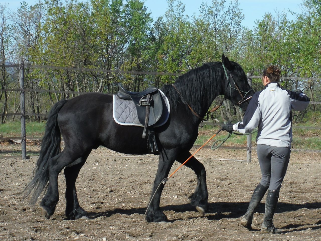 N had him gelded about four months ago in the hopes that his manners would improve. She also booked him in to be broken by Alexandrine. He had been at GAEC de Pimayon for just a week when I started to sit on on his training sessions as an observer – unfortunately, his training started while I was still in Ireland.