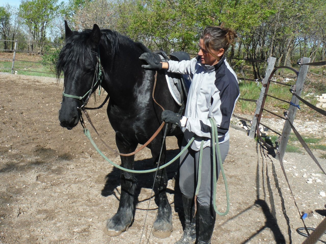 But the consistency remained. Pressure – response – release – reward. I actually LOVE how Tilou is always looking to come in to Alexandrine – she is his anchor, the one constant in all of this new stuff he is learning. Once he had worked well in both directions with Roger, he got loads of praise and Roger ‘dismounted.