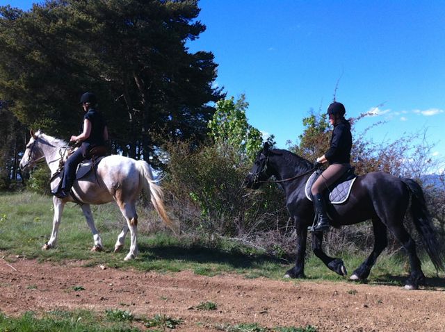 When I came back from my weekend away, I asked how Tilou was getting on. Impeccable was the answer. He had been ridden in the big arena twice and had behaved perfectly. Alexandrine had even achieved a couple of steps of canter with him. She was planning to take him out for his first hack that afternoon, and MC was bringing Quieto up to the farm in order to accompany her. She hoped to get a decent canter going on a track in the woods near the farm (one of the few canter-able tracks in the area). Would I like to bring Flurry and go too?