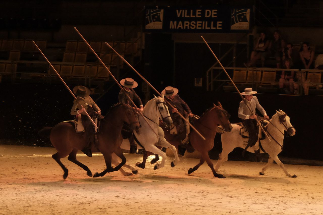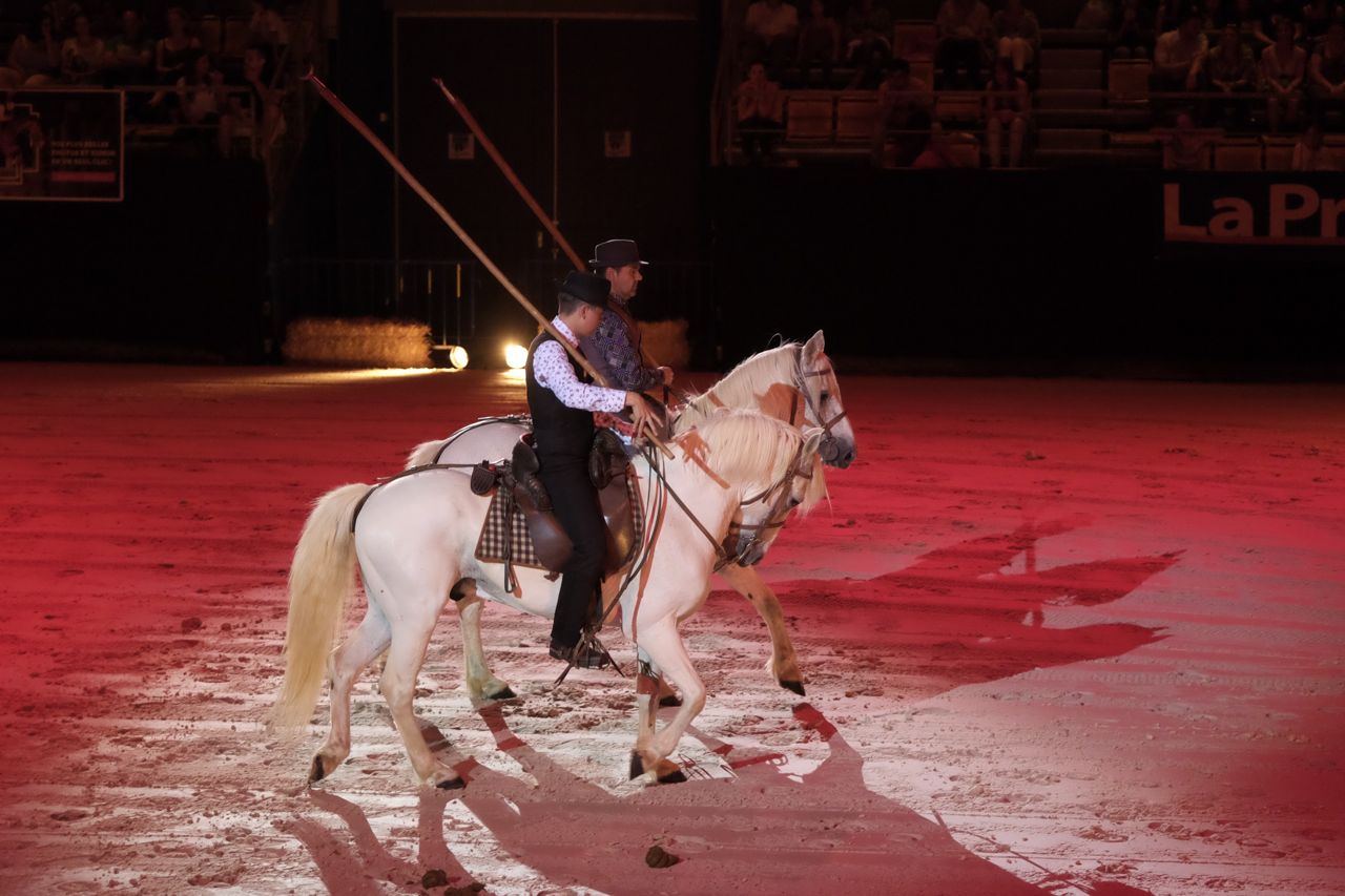 The next act came in as he left – two Camargue Gardiens, all decked out in their Gardien gear.